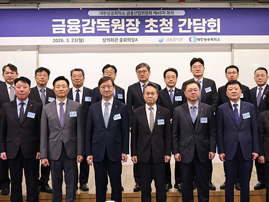 경제자료 보도자료 브리프 & 인포 포토뉴스 온라인세미나 경제칼럼 지역상의 보도자료 검색 한-인도네시아 비즈니스 포럼 대한상의, ‘한-인도네시아 비즈니스 포럼’ 개최- 대한상의, 한-인도네시아 비즈니스 포럼 개최 ... 양국 기업인 300여명 참여- 양국 기업, 공급망·배터리·바... 2026.04.01 제53회 상공의 날 기념식 소부장’, ‘글로벌 공급망’, ‘AI기반 제조혁신’ 이끈 상공인 11인 훈장 영예- 대한상의, ‘제53회 상공의 날’ 기념식 개최... 우리나라 경제 성장의 주역인 ... 2026.03.31 대한상의 금융산업위원회 대한상의 금융산업委, 이찬진 금감원장 초청 강연- 대한상의 금융산업위원회 제45차 전체회의... 진옥동 신한금융지주 회장 등 위원 40여명 참석- 이찬진 금융감독원장... 2026.03.23 대한상의-한미동맹재단-美 진출 기업 17개社 업무협약식 주한미군 전역 장병, 미국 진출 한국기업 현지 채용 지원 플랫폼 출범- 대한상의-한미동맹재단-美 진출 기업, 주한미군 전역장병 채용 플랫폼 협력 MOU 체결- 대미 ... 2026.03.09 EU 통상환경 변화와 대응전략 세미나 “2026년 EU 그린 무역장벽 본격화, 제품 ‘생애주기 관리’와 ‘데이터 확보’로 시장의 신뢰 선점해야”- 대한상의-산업부, 11일 ‘EU 통상환경 변화와 대응전략... 2026.02.11 산업경쟁력 강화와 전기요금 세미나 국제유가 내렸는데 전기요금은 그대로“연료비연동제 따라 산업용 요금 인하해야” 전문가·업계 한목소리- 대한상의, 23일 상의회관서 ‘산업경쟁력 강화와 전기요금 세미나... 2026.01.23 2026년 경제계 신년인사회 붉은 말의 해, 경제계 ‘적토마처럼 뛰자’ 신년 다짐- 대한상의, ‘경제계 신년인사회’ 개최... 국무총리‧여야 대표‧경제부처장관‧경... 2026.01.02 배경훈 부총리 겸 과기부 장관 초청 CEO 조찬간담회 과기부총리, “AI 혁신으로 주력산업 경쟁력 끌어올릴 것”- 대한상의 주최 CEO 조찬간담회 개최... 최태원 회장 등 기업인 250여명 참석- 배경훈 부총리, ‘대... 2025.12.18 123